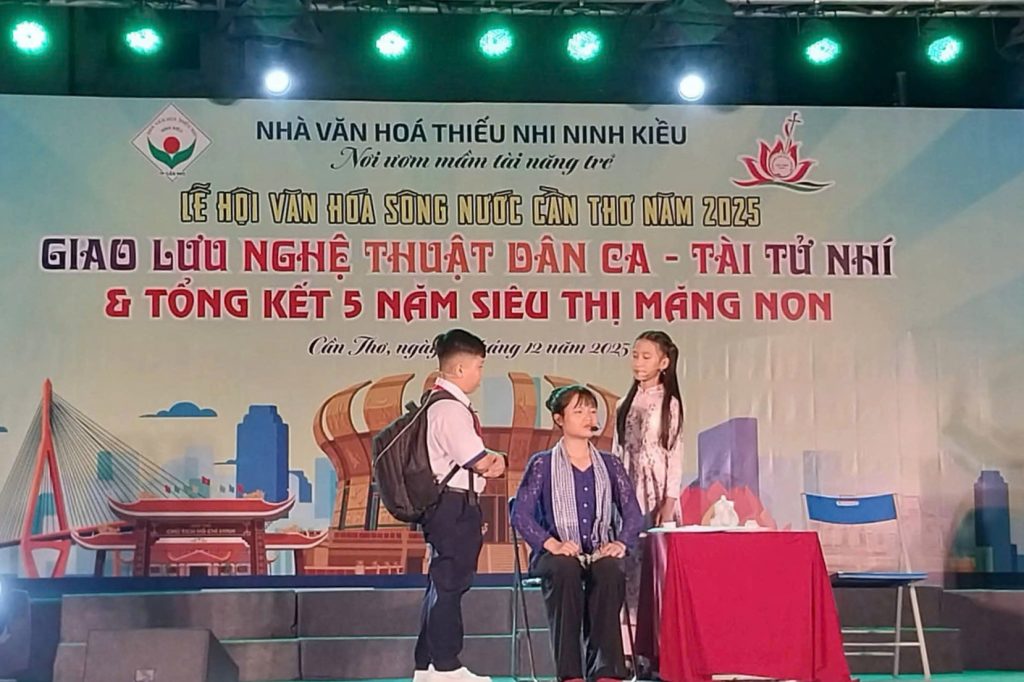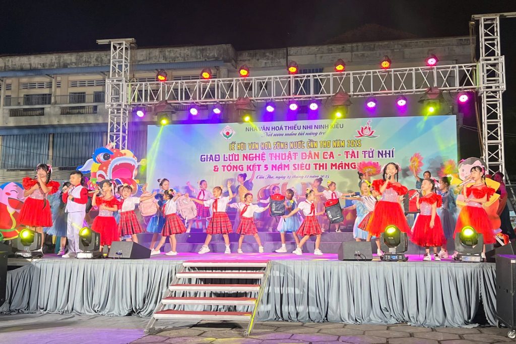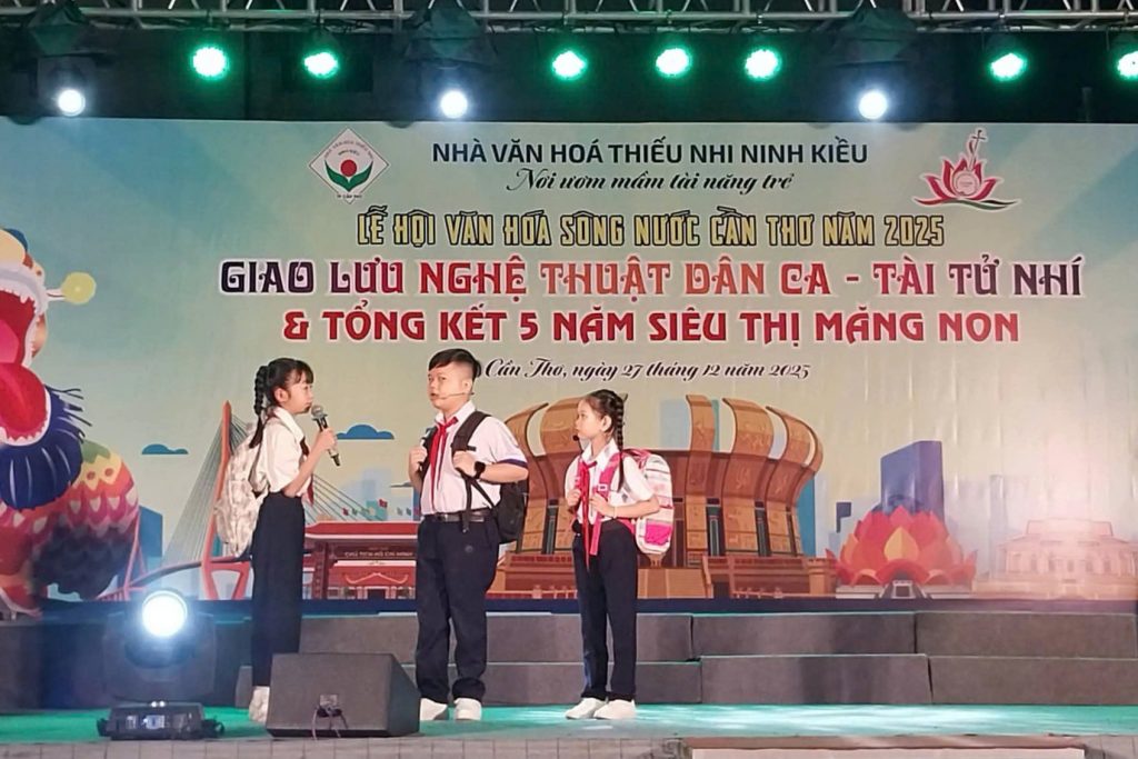 Tối ngày 27/12/2025, tại sân khấu Nhà Văn hóa Thiếu nhi Ninh Kiều, chương trình Tổng kết mô hình Siêu thị Măng non 0 đồng và Giao lưu Nghệ thuật Truyền thống Dân ca – Đờn ca tài tử nhí năm 2025 đã diễn ra trong không khí ấm áp, trang trọng và giàu ý nghĩa.