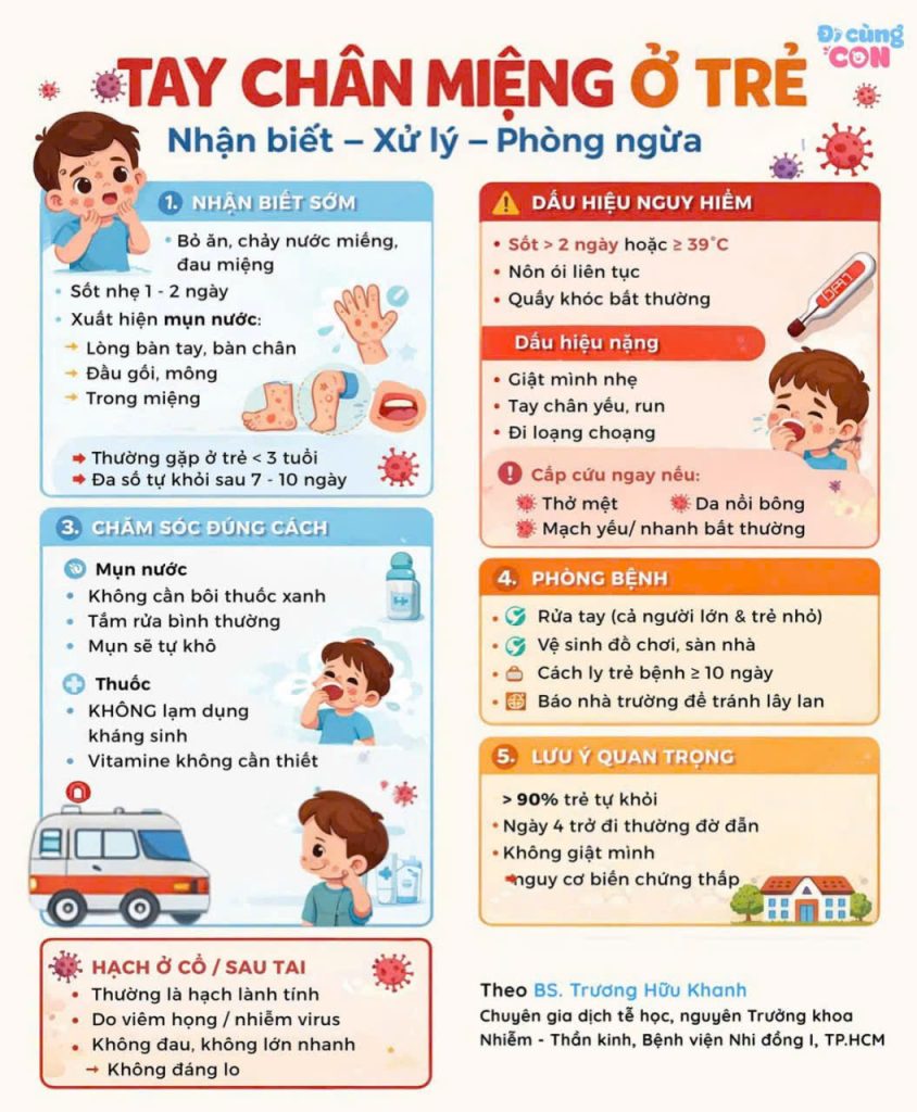 Bệnh Tay chân miệng rất thường gặp ở trẻ dưới 3 tuổi và đa số có thể tự khỏi sau 7 – 10 ngày. Tuy nhiên, ba mẹ cần nắm rõ các kiến thức sau để chăm sóc bé đúng cách: